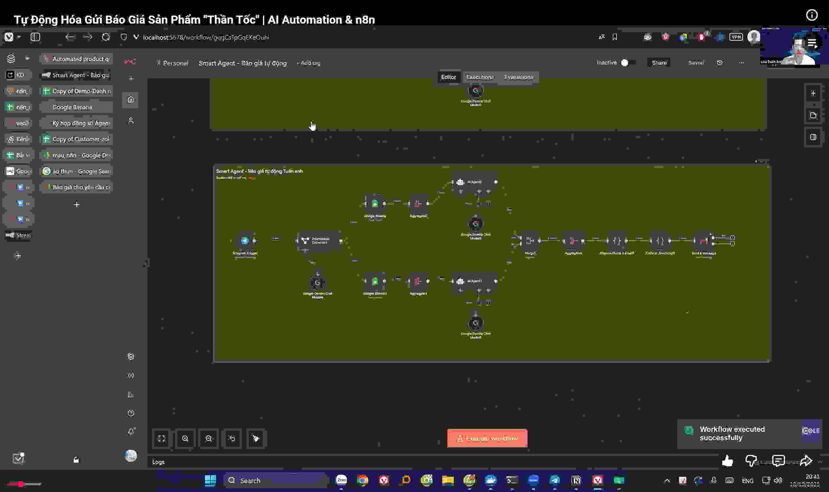 - Trợ lý tóm tắt email: Quét email “Báo cáo”, gửi cho AI tóm tắt, rồi gửi bản rút gọn qua Telegram.